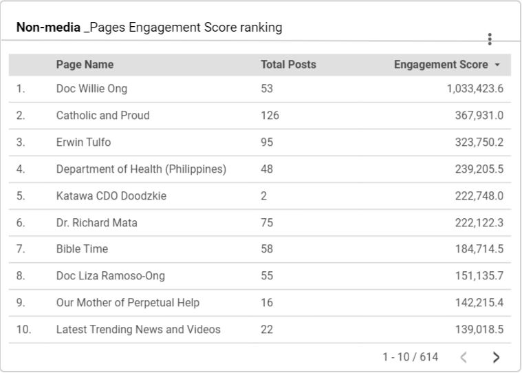 菲律賓非媒體類疫情議題高影響力粉絲專頁