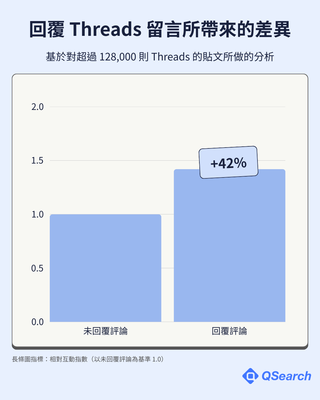 在控制帳號層級變數後,Threads 上有回覆留言的貼文,互動率平均高出約 42%。這個數字經過統計模型校正,排除了帳號本身影響力的干擾。即便僅篩選「至少收到一則留言」的貼文,結論依然穩健。
